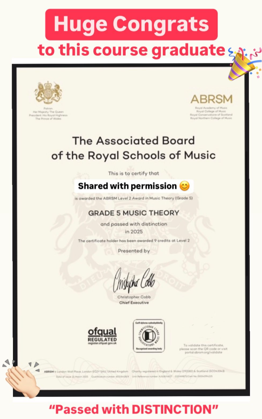 "I created my Get Grade 5 Theory Course to provide a more affordable, accessible & fun way to learn - and PASS - the ABRSM Grade 5 Theory exam."
